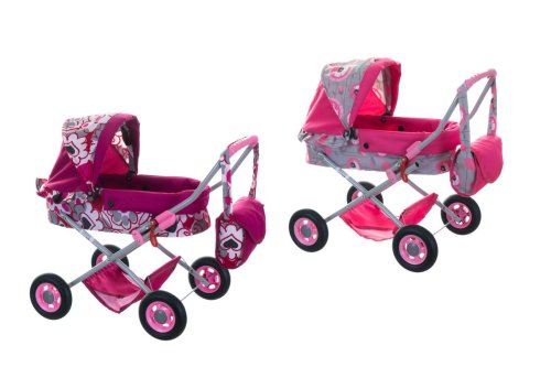 Tento kočík je ideálny pre najmenšie dievčatká, dizajn je jednoduchý a stabilný, takže kočík je pekný a má estetický vzhľad. Navyše sú vybavené s košíkom a nákupnou taškou, do ktorých si môžu malé mamičky schovať potrebné doplnky bábik. dĺžka 60 cm . Výška rukoväte 50 cm.