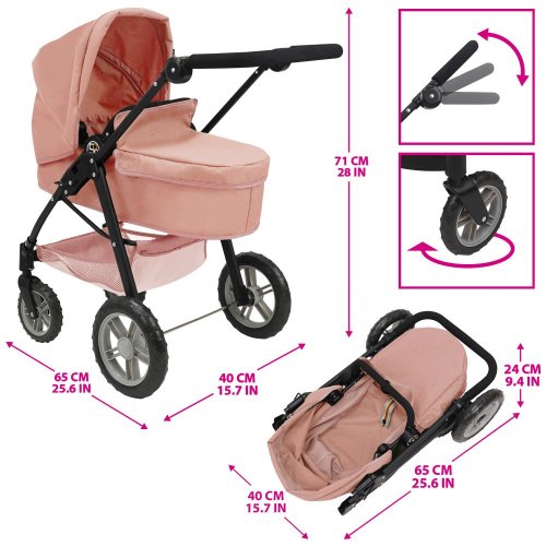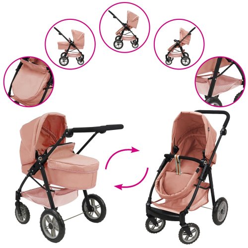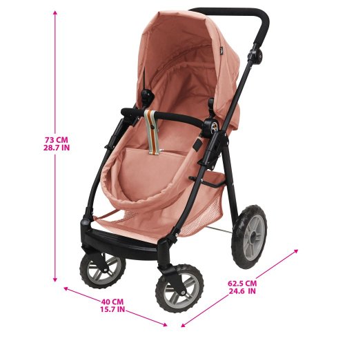 509 Crew kočík pre bábiky 2v1 • Rozmery výrobku cca 64 x 41 x 68 cm • Luxusný kočík s odnímateľným sedadlom 2v1 • Sedadlo kočíka je možné premeniť na kočík pre bábiky • Dodáva sa so strieškou a krytom topánočky • Nastaviteľná ruko do cca 53 cm