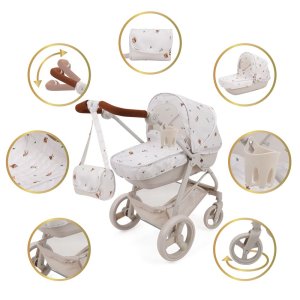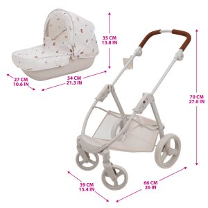 Kočík Bella pre bábiky 2 v 1 • Rozmery výrobku cca 67,5 x 40,5 x 74 cm • Luxusný kočík s odnímateľným kočíkom • Dodáva sa so strieškou a návlekom na topánočku • Nastaviteľná rukoväť • Otočné predné koleso • Veľký košík • Súčasťou balenia