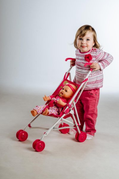 Kočík pre bábiky golfové palice je ľahko skladací a ľahký.