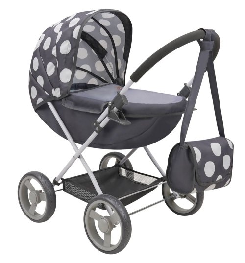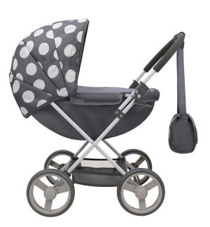 Kočík je vhodný pre bábiky do veľkosti cca. 46 cm. • Výška rukoväte: cca. 59 cm • Skladací rám kočíka pre ľahké skladovanie • Mäkká penová rukoväť • Vrátane nákupného košíka • Zaťahovacia strieška Ideálna pre deti od 3 rokov.