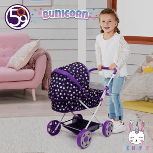 509 Crew Bunnicorn Daisy kočík pre bábiky • Výška rukoväte: cca 56 cm • Vhodné pre bábiky do cca 46 cm • Skladací rám kočíka pre ľahké skladovanie • Mäkká penová rukoväť • Súčasťou je nákupný košík • S výsuvnou strieškou