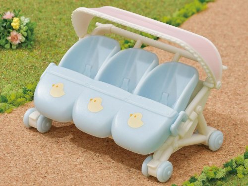 Kočík pre trojčatá je špeciálne vytvorený pre 3 malé bábätká. Sedadlá kočíka ľahko premeníte na trojitú autosedačku, ktorú bezpečne vložíte do zadnej časti auta, aby boli všetci bezpečne usadení na cestách (auto je predajné samostatne). Užite si viac zábavy s ďalšími figúrkami a doplnkami Sylvanian Families (predáva sa samostatne). Herné sady a figúrky Sylvanian Families sú nadčasové a vysoko kvalitné hračky. Hra podnecuje predstavivosť dieťaťa. Sada obsahuje: 1x kočík, 1x strieška, 1x trojsedadlo, 1x nánožník. Vek: 3+