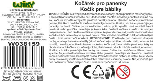 Kočík hlboký pre bábiky. Rozmery 43x34x64 cm.