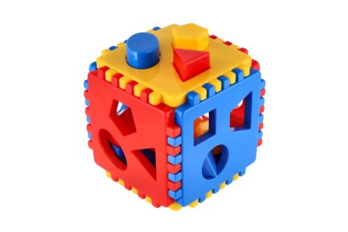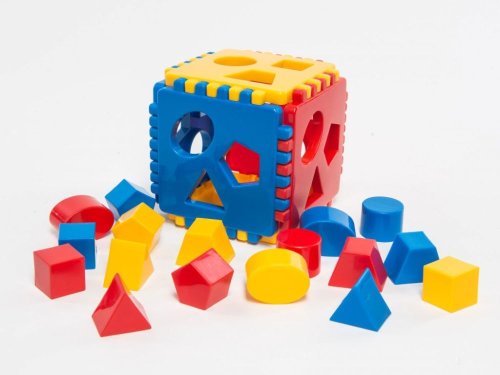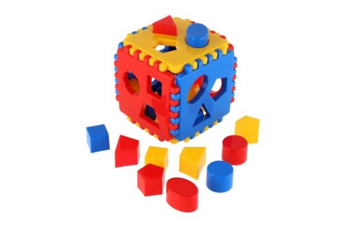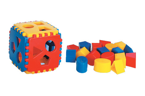 Veľká plastová vkladačka s mnohými tvarmi. Vhodné pre deti od 1 roku. Vyrobené z plastu. Rozmery sú 13 x 13 x 13 cm.