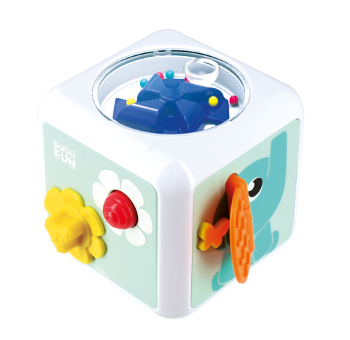 Objavte ideálnu hračku na rozvoj zmyslov a motorických zručností s touto senzomotorickou hračkou v tvare kocky, určenú pre deti od 12 mesiacov! Táto farebná kocka je navrhnutá tak, aby podporovala koordináciu rúk a očí, jemnú motoriku a zmyslové vnímanie. Kocka obsahuje rôzne textúry, tlačidlá, zrkadlá a pohyblivé časti, ktoré stimulujú dotyk a zrak dieťaťa.