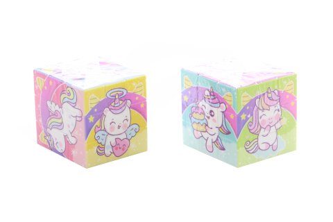 Kocka skladacia jednorožec veľkosti cca 5,5 cm.Baleno v sáč ku.Vek 3+
