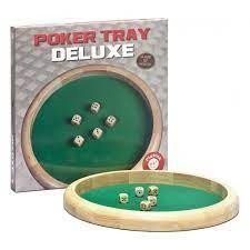 Máte chuť na bicykel kockového pokru? Potom je táto exkluzívna drevená tácka na kocky to pravé. Priemer 45 cm a 5 kociek s dĺžkou hrany 2,2 cm