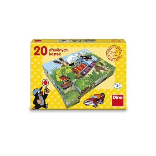 Detské drevené kocky, z ktorých je možné zostaviť 6 rôznych obrázkov. Balenie obsahuje 20 kociek. Vek: 3+