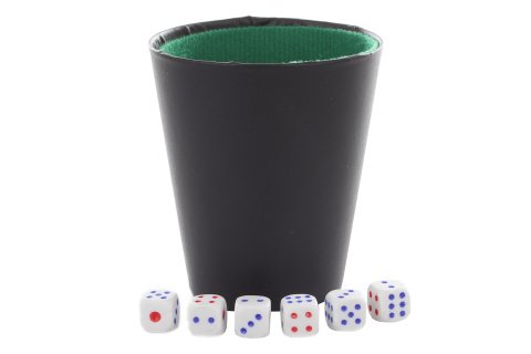 Hracie kocky s kelímkom - balenie obsahuje šesť kociek o veľkosti cca 1,2 cm. Rozmer plastového kelímku vo vnútri vypolstorvaného filcom cca 8 cm. Výrobok nie je hračka.