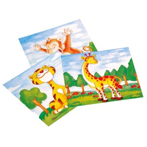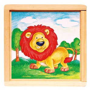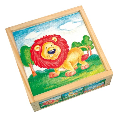 Jedna z najobľúbenejších hračiek detí - klasické drevené kocky s obrázkami divokých zvierat. Rozvíja motoriku a schopnosť tvoriť. Rozmery v drevenej krabičke 13 x 13 x 5 cm, rozmery 3,5 x 3,5 cm, motívy: lev, žirafa slon, opice, tiger medveď.