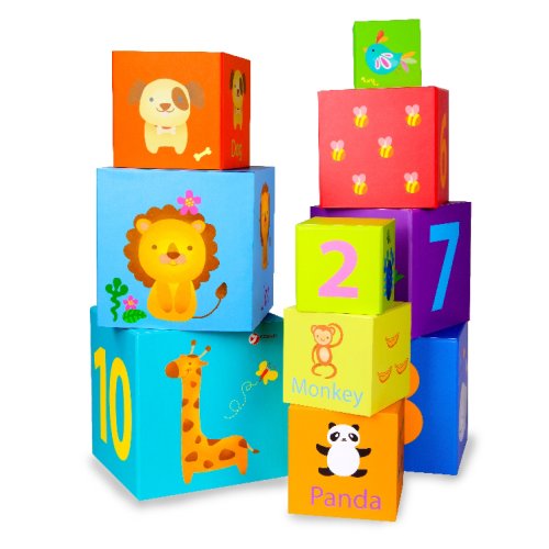 Desať papierových kociek rôznych veľkostí je pokrytých rozkošnými zvieratami, slovami, číslami a predmetmi. Deti sa tak môžu naučiť spoznávať zvieratá, čísla, čítať a počítať. Stohovacie bloky pomáhajú rozvíjať hrubú motoriku, postreh a predstavivosť! NIE JE VYROBENÉ Z DREVA!