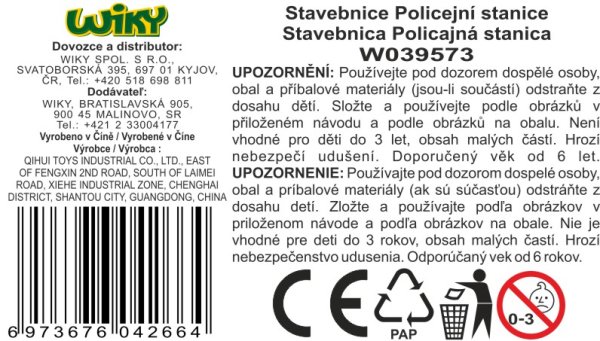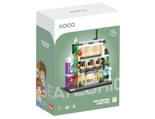 KOCO Stavebnica Policajná stanica 309 dielikov. Rozmery 8x3,5x9,5 cm. Obrázkový návod na zostavenie súčastí.