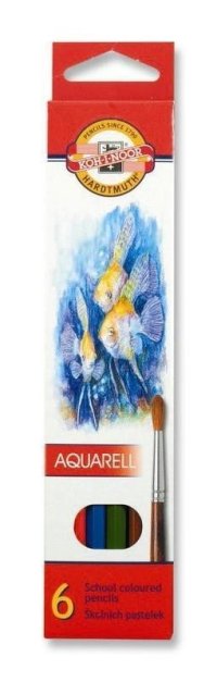 Súprava 6 ks AKVARELOVÝCH farebných pasteliek v krabičke. Pastelky sú šesťhranné, vyznačujú sa sýtou farebnou stopou s možnosťou kresbu ďalej upravovať rozmývaním pomocou štetca, prípadne hubky. Sú vhodné pre školské a hobby kreslenie.