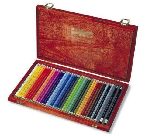 Súprava 36 ks špičkových pastelových ceruziek s kvalitným silne pigmentovaným jadrom s priemerom 3,8 mm v drevenej kazete. Súprava je doplnená dvoma grafitovými ceruzkami. Pastelky majú špičkovú povrchovú úpravu, máčaný gombík a zlaté značenie. Vyznačujú sa sýtou farebnou stopou s možnosťou kresbu ďalej upravovať roztieraním. Sú vhodné na umelecké a hobby kreslenie.