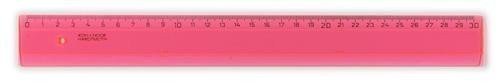 Pravítko 30 cm vyrobené z ružového priehľadného polystyrénu. Stupnica je narazená technológiou horúcej razby. Presnosť stupnice 0,2% dĺžky. Je určené pre školu aj kanceláriu. Zabalené je do potlačeného polypropylénového vrecka s eurozávesom.