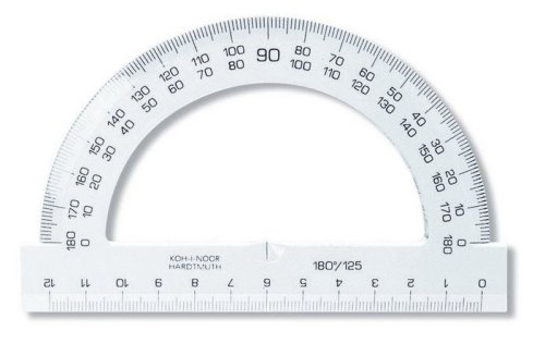 Priehľadný 12cm uhlomer vhodný do hodín matematiky, geometrie a ďalších predmetov.