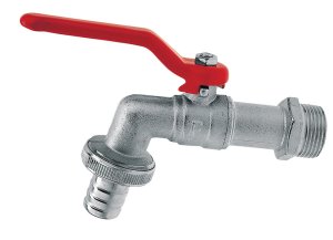 Záhradný guľový kohút s pákou 3/8 "x 1/2" na pripojenie záhradných hadíc.