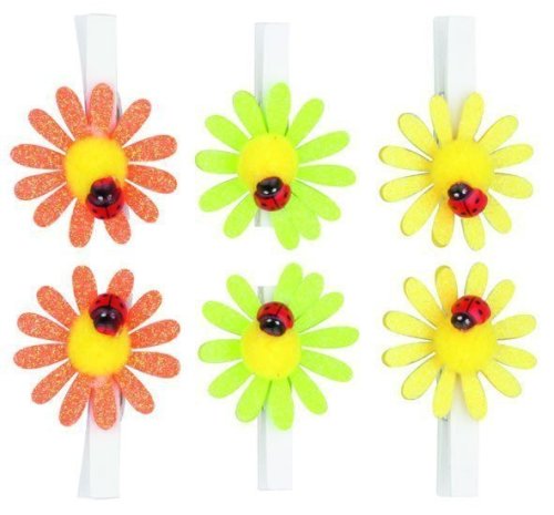 Kvietky s lienkou v jarných farbách s jemným ligotom. Vďaka kolíčku sa dajú všestranne použiť, napríklad krásne ozdobia jarné vence.