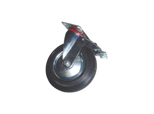 priemer: 200 mm nosnosť: 120 kg Otočné koliesko s brzdou, ktoré je určené pre nerovné a tvrdé povrchy, často montované pri kontajneroch na triedený odpad.