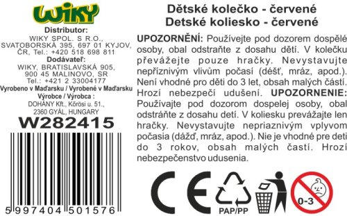 Koliesko plastové. Červená farba. Rozmery - 46x25x37 cm.