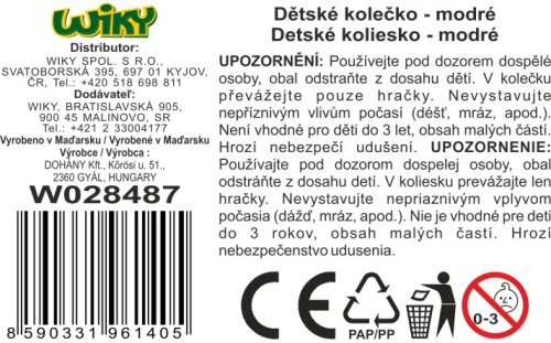 Koliesko plastové. Modrá farba. Rozmery - 46x25x37 cm.