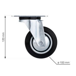 • Otočné transportné koliesko s priemerom 100 mm s dynamickou nosnosťou 70 kg