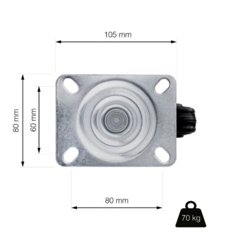 • Uchytenie: koliesko s platničkou so štyrmi montážnymi otv
