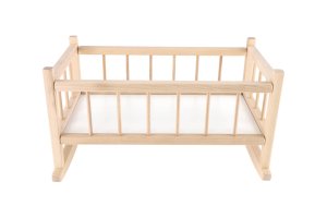Pekná kolíska z kvalitného dreva určená iba pre bábiky. Teraz bude vaša bábika v bezpečí a bude sa jej lepšie spať! Rozmer 49 x 28 x 27 cm. Vhodné pre deti od 3 rokov.
