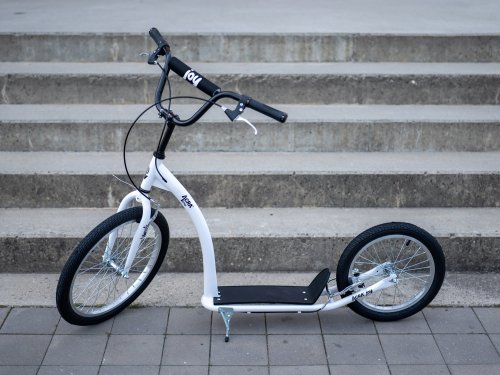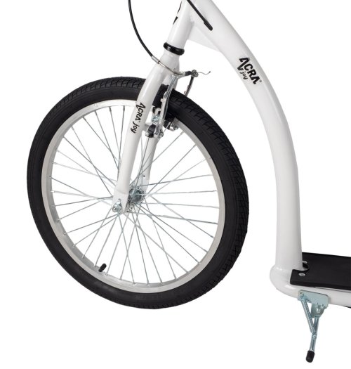 Obzeráte sa po rýchlej kolobežke so štýlovým dizajnom? Športová kolobežka Acra Joy Aven je vhodná pre začiatočníkov aj pokročilých jazdcov. Využijete ju ako na jazdu po ceste, tak na cyklotrase alebo v ľahkom teréne. Pohodlne s ňou dôjdete do školy alebo do práce. Má nafukovacie kolesá s veľkosťou 20” (predné) a 16” (zadné). Kvalitný rám z odľahčenej ocele uvezie jazdca s hmotnosťou do 100 kg.