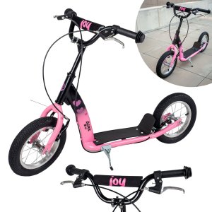 Kolesá sú nafukovacie a majú rozmer 12" . Kolobežka počas jazdy zaistí komfort. Pevné riadidlá majú gumové rukoväte pre pohodlné a bezpečné držanie. Vďaka konštrukcii z kvalitnej odľahčenej ocele sa vám s ňou dobre zaobchádza.