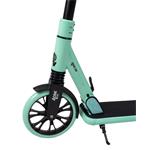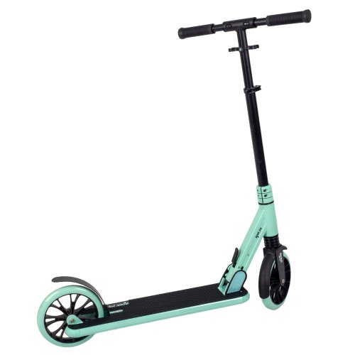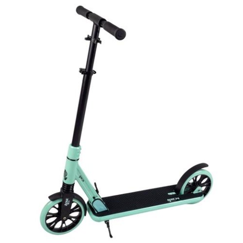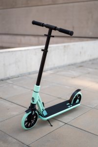 Kolobežka má gumové kolesá s plnými pneumatikami s priemerom 200 mm. Je vybavená manuálnou zadnou brzdou , brzdíte teda nohou cez zadný blatník. Riadidlá so skladacími gumovými rukoväťami sa vám budú pohodlne držať. Jednoducho si ich nastavíte podľa výšky postavy. Kolobežka je vhodná pre jazdcov od 9 rokov, s maximálnou výškou postavy 180 cm .