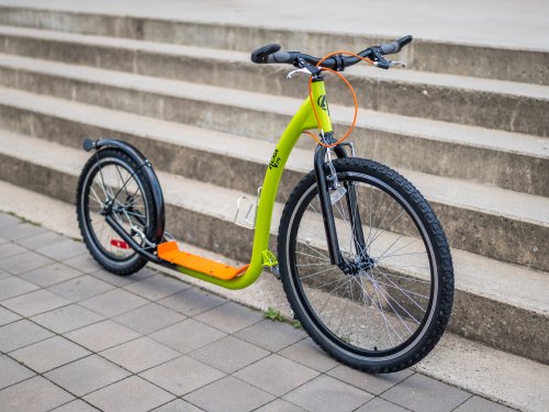 Obzeráte sa po rýchlej kolobežke so štýlovým dizajnom? Športová kolobežka Acra Joy Racer je vhodná pre začiatočníkov aj pokročilých jazdcov. Využijete ju ako na jazdu po ceste, tak na cyklotrase alebo v ľahkom teréne. Pohodlne s ňou dôjdete do školy alebo do práce. Má nafukovacie kolesá s veľkosťou 26” (predné) a 20” (zadné). Kvalitný rám z odľahčenej ocele uvezie jazdca s hmotnosťou do 120 kg.
