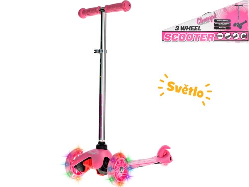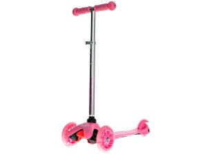 Kolobežka s 3 kolesami je ideálna na zoznámenie detí s kolobežkou. Pri jazde deti zdokonaľujú motorické zručnosti, koordináciu, športujú a bavia sa. Ružová kolobežka má nastaviteľné riadidlá svietiace LED kolesá. Vhodné pre deti od 24 mesiacov.