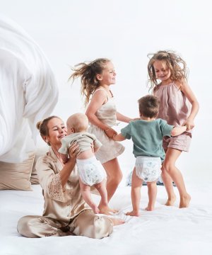 Zloženie: buničina, netkaná textília, papier, LDPE, SAP gél, lepidlo, elastan. Bielené horúcim vzduchom, bez parfumov.