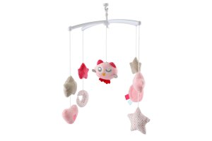 Kolotoč nad postieľku s plyšovými farebnými hračkami bábätko zabaví a pomôže mu zaspať. Na každom zo štyroch plastových ramenách nájdete hviezdičku, srdiečko alebo nechtík a uprostred sovičku. Kolotoč hrá príjemnú melódiu - má naťahovací stojok. Rozmer krabice: 19 x 33 x 5,5 cm Vhodné od 6 mesiacov