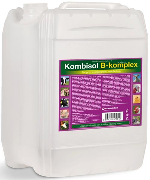 Problém: V období intenzívneho rastu alebo vysokej úžitkovosti je potrebné organizmu dodať zodpovedajúce množstvo energie. Základný zdroj energie tvorí vybalansovaná kŕmna dávka. V prípade akéhokoľvek navýšenia potreby energie nad túto hladinu môže viesť k poklesu úžitkovosti, a tým k zníženiu ekonomiky chovu. Zloženie v 1 ml: vitamín B1 3,6 mg, vitamín B2 4,5 mg, niacínamid 30 mg, vitamín B6 5 mg, biotín 0,03 mg, vitamín B12 0,015 mg, cholínchlorid 27 mg, D-panthenol 9 mg. Spôsob aplikácie: Kombisol B - komplex sa podáva zvieratám riadne rozriedený v pitnej vode alebo mlieku. Preventívne po dobu 3 – 5 dní v uvedených dávkach. Pri polovičnom dávkovaní sa pridáva po dobu 6 – 10 dní. Roztok je nutné pripravovať denne čerstvý, chrániť pred priamym slnečným svetlom a čo najrýchlejšie spotrebovať. Nepodávať neriedený prípravok! Dávkovanie: