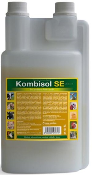 Problém: V Českej republike je dlhodobo pozorovaná nízka hladina selénu v kŕmnych surovinách, čo v kombinácii s intenzívnym rastom alebo vysokou úžitkovosťou zvyšuje nároky na jeho doplnenie do kŕmnej dávky spolu s vitamínom E. Zloženie v 1 ml: vitamín E 200 mg, selén 0, 2 mg. Spôsob aplikácie: Kombisol SE sa podáva zvieratám riadne rozriedený v pitnej vode alebo mlieku. Preventívne po dobu 3 – 7 dní v uvedených dávkach. Aplikáciu je možné opakovať po 8 týždňoch. Roztok je nutné pripravovať denne čerstvý, chrániť pred priamym slnečným svetlom a čo najrýchlejšie spotrebovať. Nepodávať neriedený prípravok! Dávkovanie: