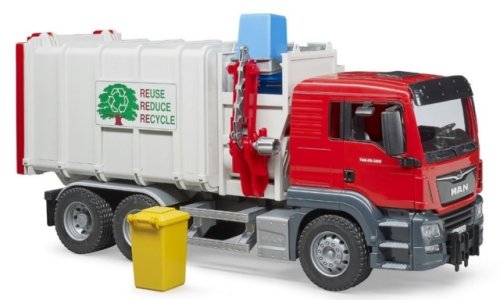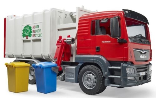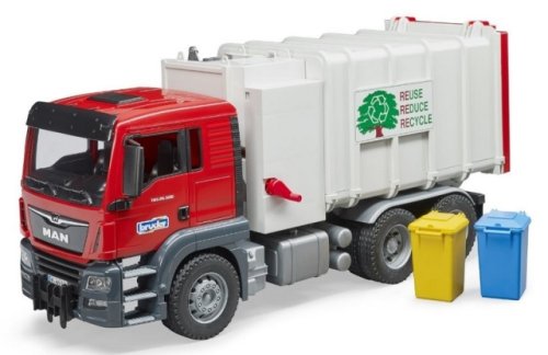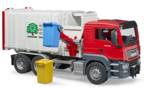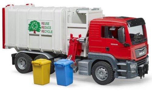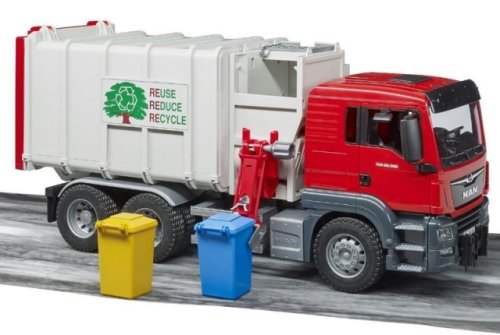 Bruder 03761 Nákladné auto MAN smetiarka v šedo-červenom prevedení má veľa funkčných prvkov, napr. sklopnú kabínu, mäkké profilované pneumatiky, pohyblivé zrkadlá a ďalšie. Snáď každý malý chlapec chcel byť niekedy smetiarom. Umožnite to tomu vášmu s týmto štýlovým smetiarskym autom. Balenie obsahuje 2 popolnice. K modelu Bruder 3761 si môžete dokúpiť množstvo ďalšieho príslušenstva a doplnkov Bruder a užiť si tak ešte viac zábavy. Vyrobené v Nemecku, z kvalitných materiálov. Hlavné vlastnosti: veľa funkčných prvkovsklopná kabínapohyblivé zrkadlá2 popolnicevyrobené v Nemecku