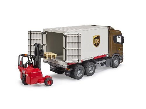 Pohodlné a robustné vozidlá BRUDER predstavujú vo svojej ponuke rad Scania Super R. Séria R sa vyznačuje jedinečnou kombináciou pohodlia a odolnosti. S novými modelmi od firmy BRUDER si deti môžu realisticky prežiť rôzne situácie. Spoločnosť BRUDER teraz ponúka verziu s tromi nápravami, výmennou nadstavbou pre kontajnery a vysokozdvižným vozíkom. Riaditeľný vysokozdvižný vozík s dvojdielnym zdvíhacím stožiarom, vychyľovaním lana, funkciou naklápania, nastaviteľnou šírkou vidlíc a pneumatikami s profilom. Kontajnerová nadstavba ťahača je demontovateľná na všetky jednotlivé diely av zadnej časti má výklopné dvere. Ďalšou výnimočnou vlastnosťou tohto vozidla je výmenná nadstavba, ktorá sa automaticky odpojí od vozidla vytiahnutím a nastavením oporných nôh a zdvihne kontajner, čím umožní nákladnému vozidlu vyjsť spod výmennej nadstavby. Nová kabína sa vyznačuje typickým dynamickým dizajnom nového radu R značky Scania. Samozrejmosťou sú sklopné vonkajšie zrkadlá a zasklenie z vysoko kvalitného polykarbonátu, otváracie dvere a možnosť doplnenia svetelného a zvukového modulu. Vyrobené z vysoko kvalitných plastov, ako je ABS. Mierka 1:16. Možno použiť na hru vo vnútri aj vonku. Rozmery auta: 26,5 x 18,5 x 53,5 cm. Rozmery balenia: 29 x 20,5 x 71 cm. Vek: 4+