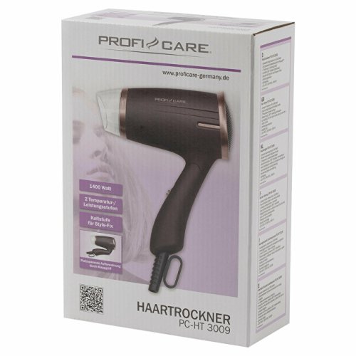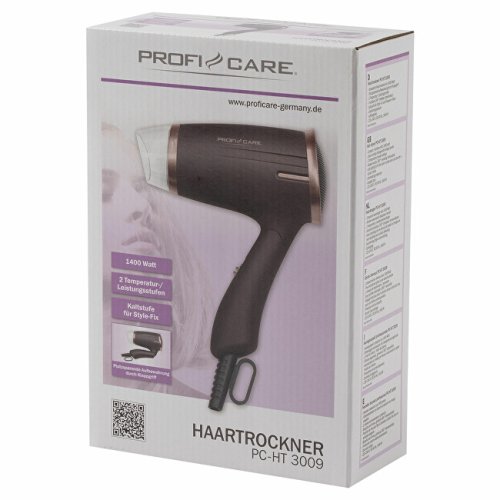 Kompaktný sušič vlasov HT 3009 je vhodný ako na domáce použitie, tak vďaka svojim rozmerom a sklopné rukoväte aj na cestovanie. Jeho výkon 1 400 W sa však dorovná profesionálnym sušičom vlasov. Tento fén je možné prevádzkovať v 2 teplotných stupňoch, nechýba tu však ani studený vzduch na konečné úpravy a štylovanie vlasov. Model HT 3009 je na rukoväti vybavený závesným okom pre pohodlnejšie skladovanie. Chýbať nesmie ani ochrana proti prehriatiu.