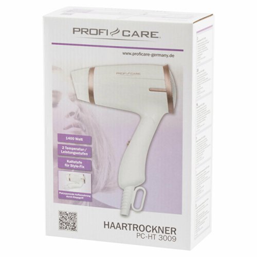 Kompaktný sušič vlasov HT 3009 je vhodný ako na domáce použitie, tak vďaka svojim rozmerom a sklopné rukoväte aj na cestovanie. Jeho výkon 1 400 W sa však dorovná profesionálnym sušičom vlasov. Tento fén je možné prevádzkovať v 2 teplotných stupňoch, nechýba tu však ani studený vzduch na konečné úpravy a štylovanie vlasov. Model HT 3009 je na rukoväti vybavený závesným okom pre pohodlnejšie skladovanie. Chýbať nesmie ani ochrana proti prehriatiu.