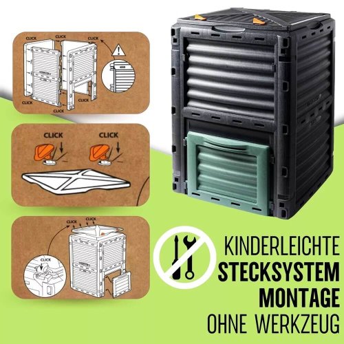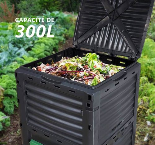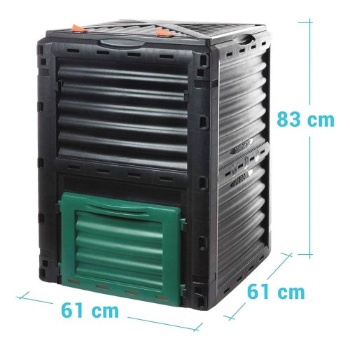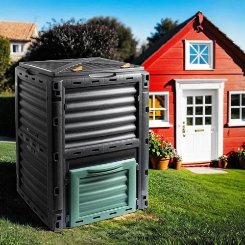 Praktický kompostér s objemom 300 litrov, ideálny na ekologické spracovanie organických odpadov Vďaka svojej konštrukcii a objemu poskytuje dostatok priestoru pre efektívne kompostovanie na vašej záhrade.