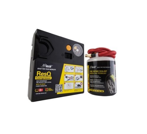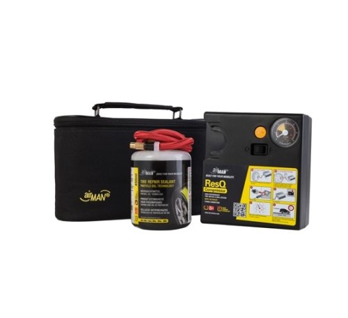 ResQ Tire Repair Kit značky AirMan alebo opravná sada na pneumatiky vám pomôže v prípade defektu na cestách. Ide o rýchle, jednoduché a čisté riešenie. Tento dvojdielny systém vrátane kompresora a fľaše s tesniacou hmotou je určený pre všetky typy osobných vozidiel.