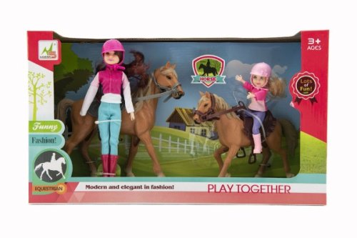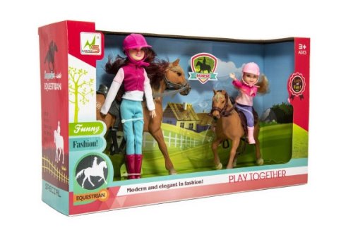 Nádherná sada pre malé milovníčky koní. Džokejkám nechýba jazdecké oblečenie ani helma. Hriva ani chvost nie sú česacie. Vyrobené z kvalitných a odolných materiálov. Doplňte si farmu o nových koníkov aj s jazdkyňami. Rozmery balenia 44 x 26 x 12 cm. Vhodné pre deti od 3 rokov.