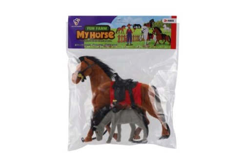 Kôň so sedlom a ohlávkou pre všetkých obdivovateľov a milovníkov koní. Kôň je plastový s povrchovou úpravou fliška. Figúrku využijete napríklad pri hraní na vašej farme. Rozmery balenia 21 x 25 x 5 cm. Vhodné pre deti od 3 rokov.