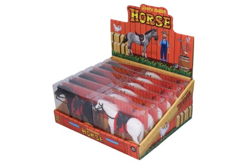 Kôň figúrka. Veľkosť 14 cm. 2 varianty - čierna, biela. Display box - 12 ks.