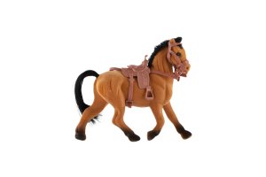 Kôň so sedlom a ohlávkou pre všetkých obdivovateľov a milovníkov koní. Kôň je plastový s povrchovou úpravou fliška. Figúrku využijete napríklad pri hraní na vašej farme. Kôn má 15 cm. Rozmer balenia: 16 x 24 cm Vhodné pre deti od 3 rokov