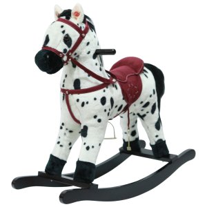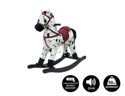 Hebučký hojdací kôň po stlačení uška rehtá a hýbe chvostíkom. Po stlačení druhého ušká vydáva zvuky klapotu podkov pri kluse a hýbe chvostíkom. Batérie sa vkladajú do puzdra umiestneného na brušku. Hračka pomáha dieťaťu rozvíjať koordináciu pohybov a podnecuje jeho predstavivosť. Návod na zostavenie a vloženie batérií je vo vnútri krabice. 3ks batérií AA nie sú súčasťou balenia. Nosnosť 50 kg. Výška koňa: 71 cm Výška sedla: 47 cm Rozmer balenia 62 x 56 x 19 cm Vhodné pre deti od 3 rokov