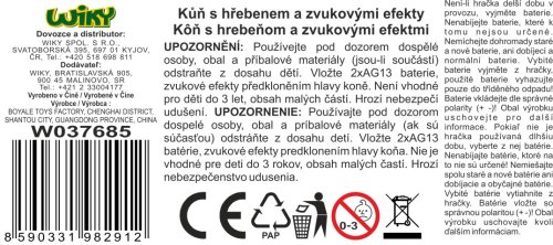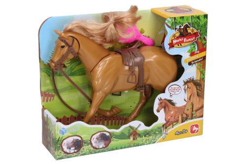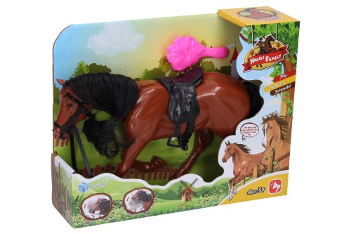 Kôň s hrebeňom a zvukovými efektmi. Veľkosť 26 cm. Zvukové efekty predklonením hlavy. 2xAG13 batérie súčasťou. 2 varianty - tmavo hnedý, svetlo hnedý.